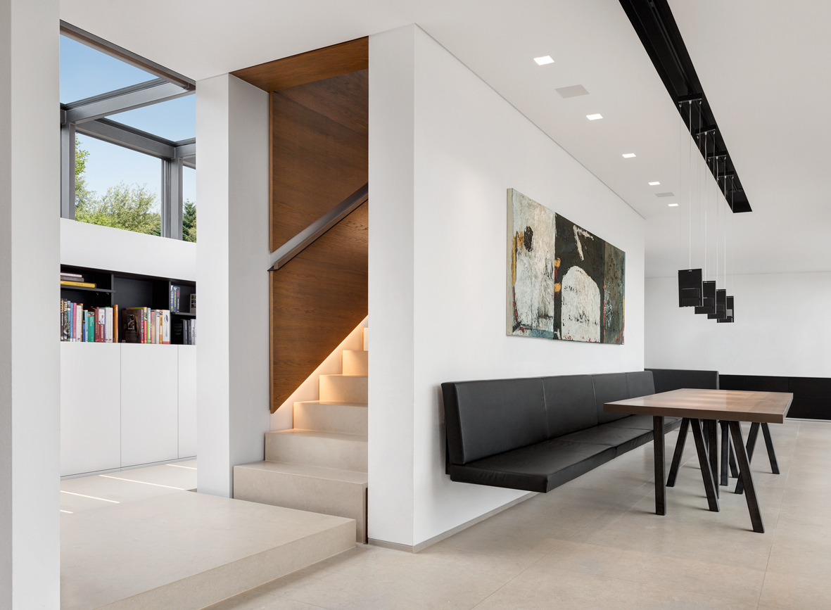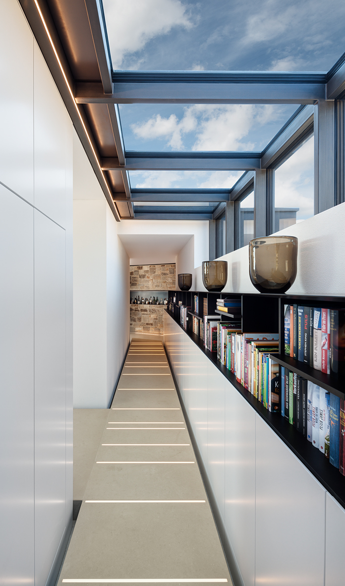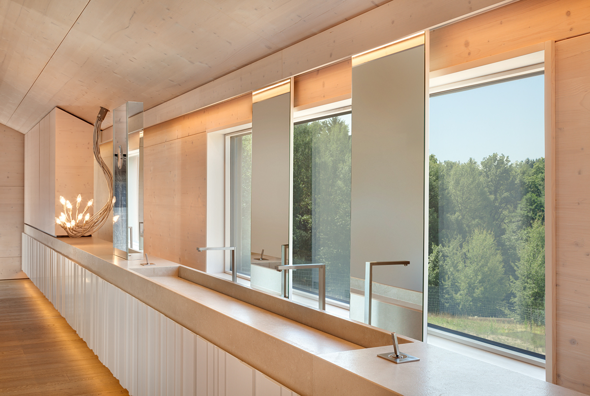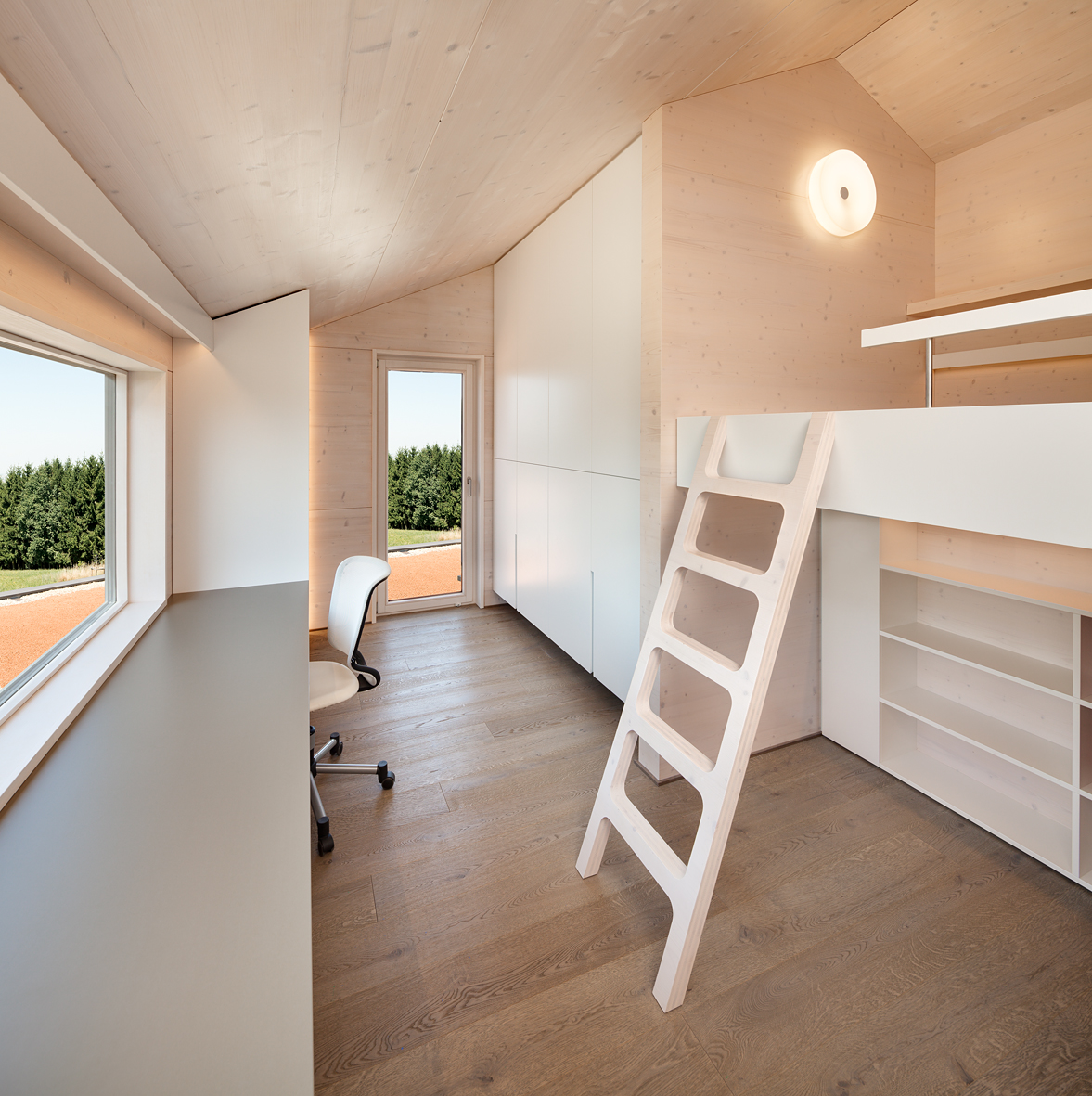 Der pure Luxus, hochwertige Details zeichnen dieses Projekt aus. Das Obergeschoß zeigt was in einem Massivholzhaus an Ästhetik steckt. Die natürlich elegante Oberfläche des Massivholzes verknüpft mit eleganten Planungsdetails und hochwertigster Handwerkskunst zeigt, wie ein Holzhaus modern interpretiert werden kann.